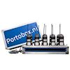 De Portobox© 400 bevat een lader incl. 10 portofoons in de 400 serie. Via een 220 volt snoer kan de box simpel worden opgeladen. Deze digitale portofoons hebben standaard 16 kanalen. 5 kanalen kunnen ingesteld worden voor onderling portofoon verkeer zonder steunzender. Op speciaal verzoek kunnen andere kanalen worden toevoegen. Tevens beschikt deze portofoon over 10 duplex kanalen voor gebruik op de repeater. Door het gebruiik via een repeater neemt het bereik toe tot maximaal 12,5 km rond om de repeater